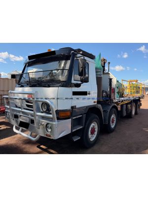 Make: Tatra Model: OTA 7815-2 Year: 2007 KM's: 162,000 GVM: 41,000 kg GCM: 71,000 kg Type: 8x8 - Hiab 0992230 Crane - Handrails - Fold Away Ladders (Both Sides) - Air Conditioned Cab (Just been serviced) - Ring Feeder - 70mm Tow Hitch Flat Top Tray Truck Location: Western Australia Learn More